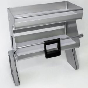 Handdoekhouder uittrekbaar is door de nylon wielen is deze makkelijk uit te schuiven. De lengte van de bevestigingsplaat is 400 mm, de breedte 18 mm. De totale breedte bij horizontale bevestiging is 94mm. Deze handdoekhouder kan zo’n 290 mm buiten de kast worden uitgeschoven. Montage is eenvoudig met de meegeleverde schroeven.